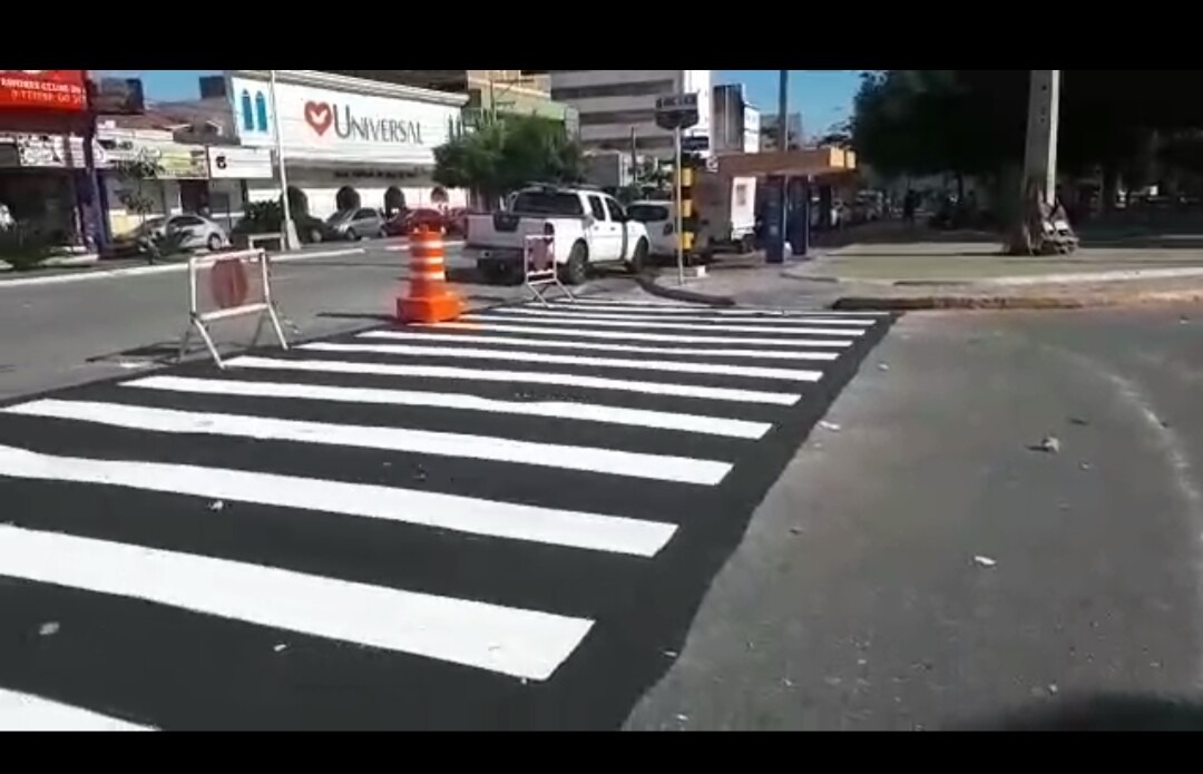 Sttrans de Patos pinta faixa de pedestre em 'X' e conserta erro após se tornar motivo de chacota