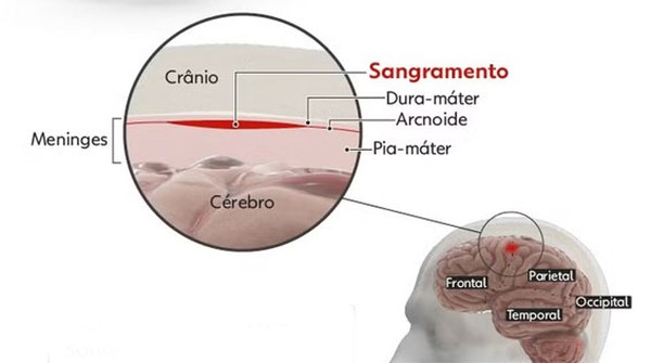 O sangramento estava entre o cérebro e a membrana meníngea (que reveste o órgão). O cérebro não foi atingido.